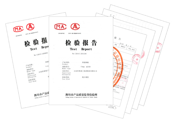 2014年9月以來,山東省質監局和有關質檢機構對全省制造業產品質量合格率進行了統計調查,省質監局委托濰坊市產品質量監督檢驗所依據《熱軋鋼板產品質量統計調查合格判定準則》、JGJ81-2002、GB/T288.1-2010、GB/T229-2007、GB/T4340.1-2009、GB/T4336-2002對經典集團兩種型號的焊接鋼板進行了抽樣檢驗,檢驗結論為合格。