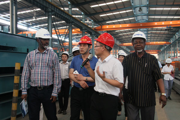 駐華大使們參觀了經(jīng)典集團(tuán)的生產(chǎn)車間、辦公樓、職工培訓(xùn)中心、宴會廳、愛心超市和千人職工餐廳。苗董事長向非洲客人介紹了經(jīng)典集團(tuán)的生產(chǎn)經(jīng)營、技術(shù)創(chuàng)新、產(chǎn)學(xué)研合作、人才引進(jìn)培養(yǎng)、企業(yè)文化建設(shè)、經(jīng)典產(chǎn)業(yè)發(fā)展等有關(guān)情況。大使們對經(jīng)典集團(tuán)的科學(xué)化、信息化、現(xiàn)代化的企業(yè)管理給予高度評價(jià),對經(jīng)典集團(tuán)在飛速發(fā)展中取得的成就表示欽佩。