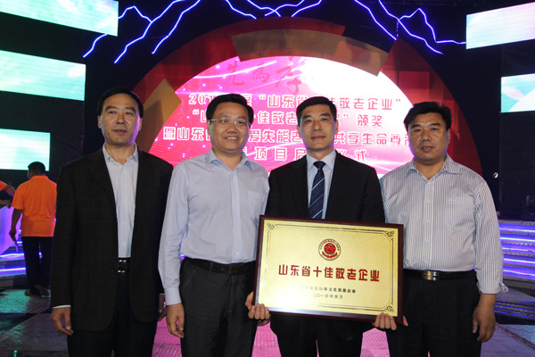 2014年5月9日下午,由山東省老齡辦、山東省老齡事業(yè)發(fā)展基金聯(lián)合會聯(lián)合舉行的2013年度“山東省十佳敬老企業(yè)”“山東省十佳敬老企業(yè)家”頒獎暨山東省“關(guān)愛失能老人,共享生命尊嚴(yán)”公益項目啟動儀式在濟(jì)南舉行,經(jīng)典集團(tuán)榮獲“山東十佳敬老企業(yè)”經(jīng)典集團(tuán)董事長苗樹文出席頒獎典禮。