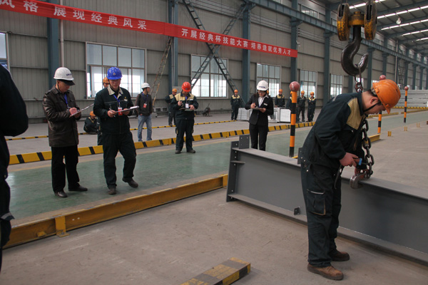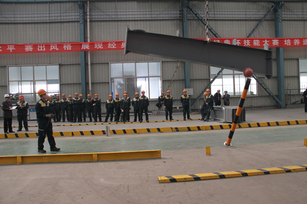 比賽在集團(tuán)公司輕鋼車間進(jìn)行。比賽活動將理論學(xué)習(xí)和實(shí)踐操作相結(jié)合,就安全知識的理解、吊車性能的掌握、實(shí)際吊裝操作三項內(nèi)容進(jìn)行了競賽。實(shí)際操作中設(shè)計了起吊鋼構(gòu)件撞球動作,要求在規(guī)定的時間內(nèi)準(zhǔn)確完成技術(shù)動作。經(jīng)過緊張而激烈的比賽和成績綜合評比,烤梁班組的馮勇獲得起重機(jī)技能比賽第一名,門焊機(jī)班組李寶光、烤梁班組的張世凱分別獲得起重機(jī)技能比賽第二名;組立機(jī)班組黃元德、拼裝班組孔祥文、史保健分別獲得起重機(jī)技能比賽第三名,并授予“青年崗位技術(shù)能手”榮譽(yù)稱號;姜勝利、顧凱、李小明、李慶分別獲得起重機(jī)技能比賽優(yōu)秀獎,并授予“技能操作優(yōu)勝者”榮譽(yù)稱號。