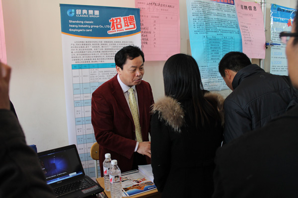 3月20日,經(jīng)典集團組織參加青島理工大學(xué)2013年春季畢業(yè)生雙選會。我公司董事長苗樹文,總經(jīng)理杜福生等領(lǐng)導(dǎo)一同參加了此次雙選會。在雙選會現(xiàn)場與畢業(yè)生面對面進(jìn)行親切交流,對于企業(yè)和畢業(yè)生來說,是一次很好的雙選機會,更是一場供需見面的盛宴。見面會現(xiàn)場人潮涌動,異?;鸨?,畢業(yè)生與用人單位進(jìn)行積極交流、雙向選擇,成效十分顯著。
