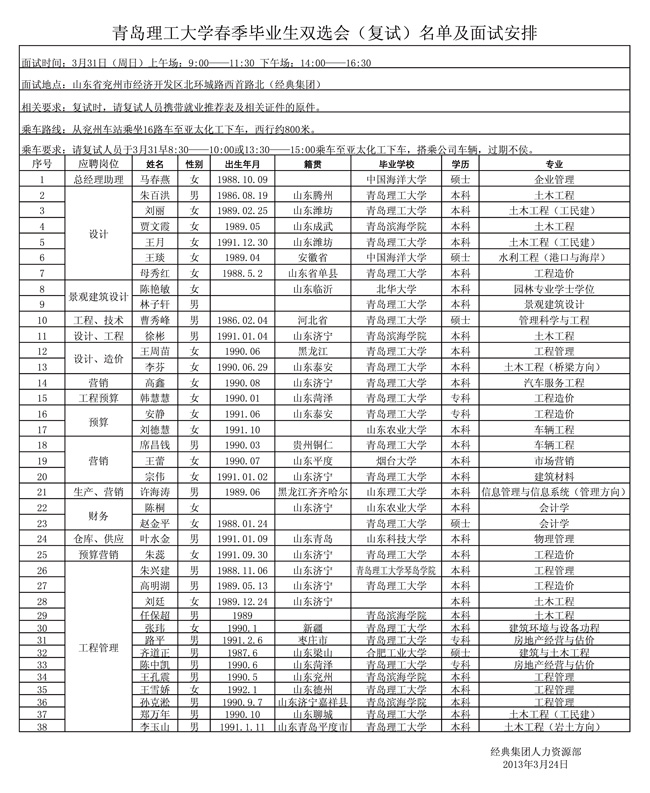 雙選會現(xiàn)場畢業(yè)生共投遞我公司簡歷286份,經(jīng)過初試篩選,進(jìn)入復(fù)試人員38位,具體復(fù)試安排及進(jìn)入復(fù)試人員名單請參考《青島理工大學(xué)春季畢業(yè)生雙選會(復(fù)試)名單及面試安排》。