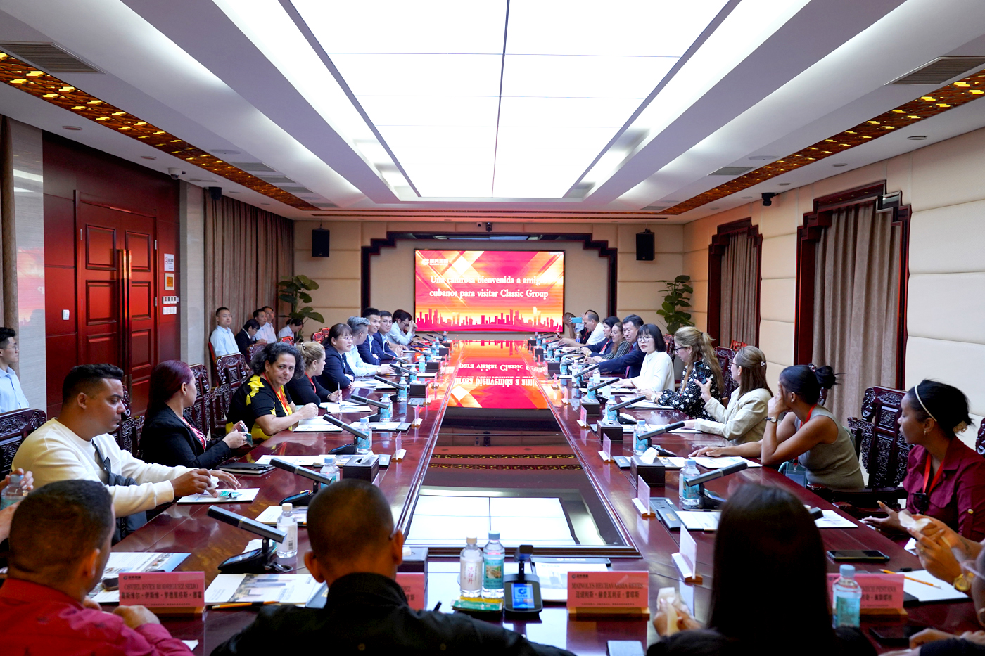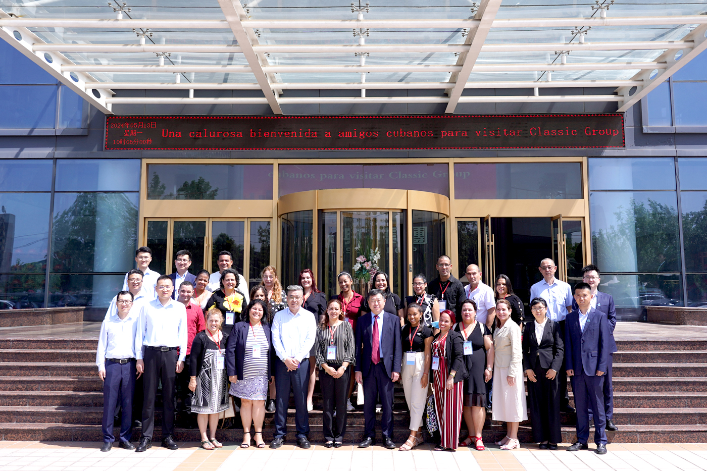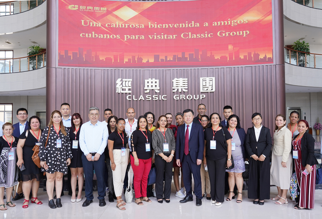 5月13日上午,古巴貨幣財稅政策研修班學員20余人,在山東外貿職業(yè)學院院長刁建東的陪同下,蒞臨經(jīng)典集團就企業(yè)財稅管理政策進行參觀交流。經(jīng)典集團副總經(jīng)理兼生產(chǎn)總工張琦、經(jīng)典集團副總經(jīng)理侯士輝等陪同。