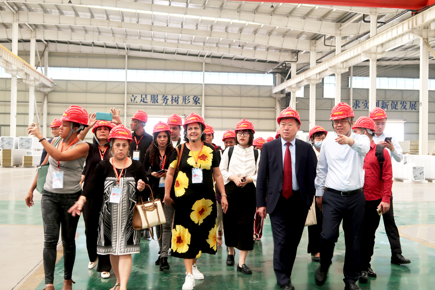 該研修班一行先后參觀了經(jīng)典集團凱思諾智能化生產(chǎn)線、中冶智能化生產(chǎn)車間以及高端裝配式建筑集成房屋項目等。在座談會上,集團副總經(jīng)理兼生產(chǎn)總工張琦對研修班學員一行的到來表示熱烈的歡迎,詳細介紹了集團發(fā)展歷程、生產(chǎn)經(jīng)營、企業(yè)文化建設等,并就集團產(chǎn)業(yè)布局和外貿工作開展情況進行了重點介紹。