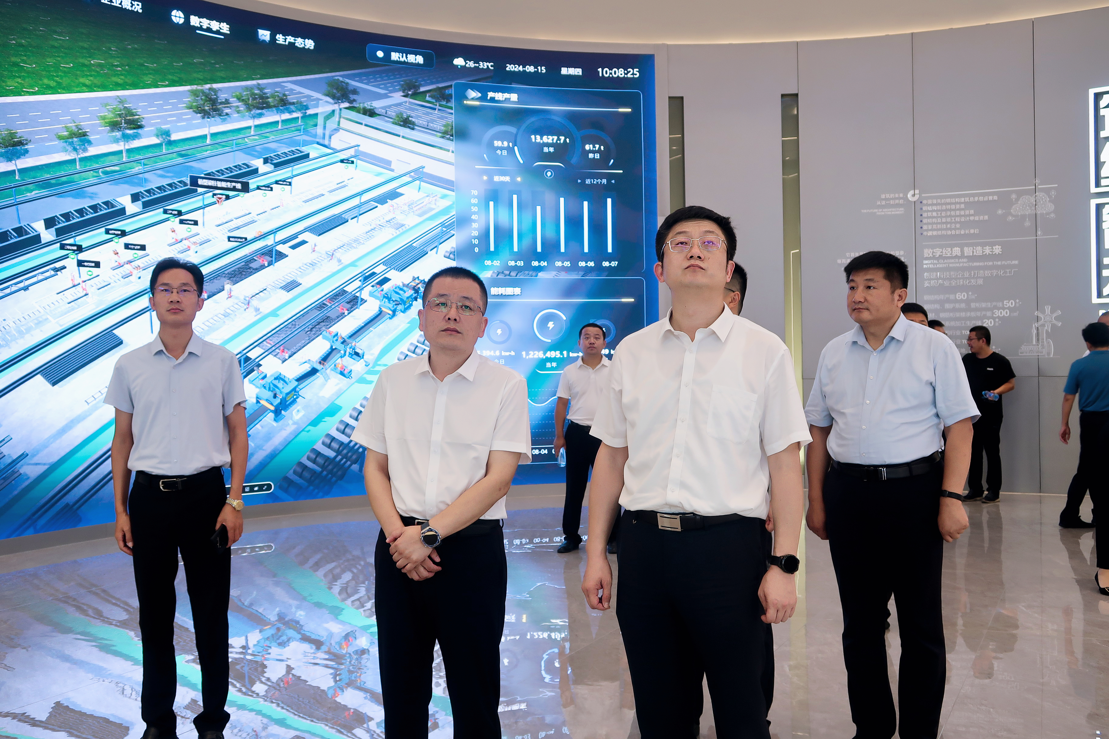 王慶書記一行來到集團展廳察看工業數字化信息平臺建設情況,詳細了解了數字生產、數字設備、數字孿生以及產業數字化發展等情況,對經典集團數字化轉型的先進做法和取得成效給予了充分肯定。他強調,要繼續保持創新發展的良好勢頭,加快推進數字化轉型,不斷深化數字賦能工業發展,探索更多新技術、新應用、新模式,進一步提升企業的智能化水平和核心競爭力。